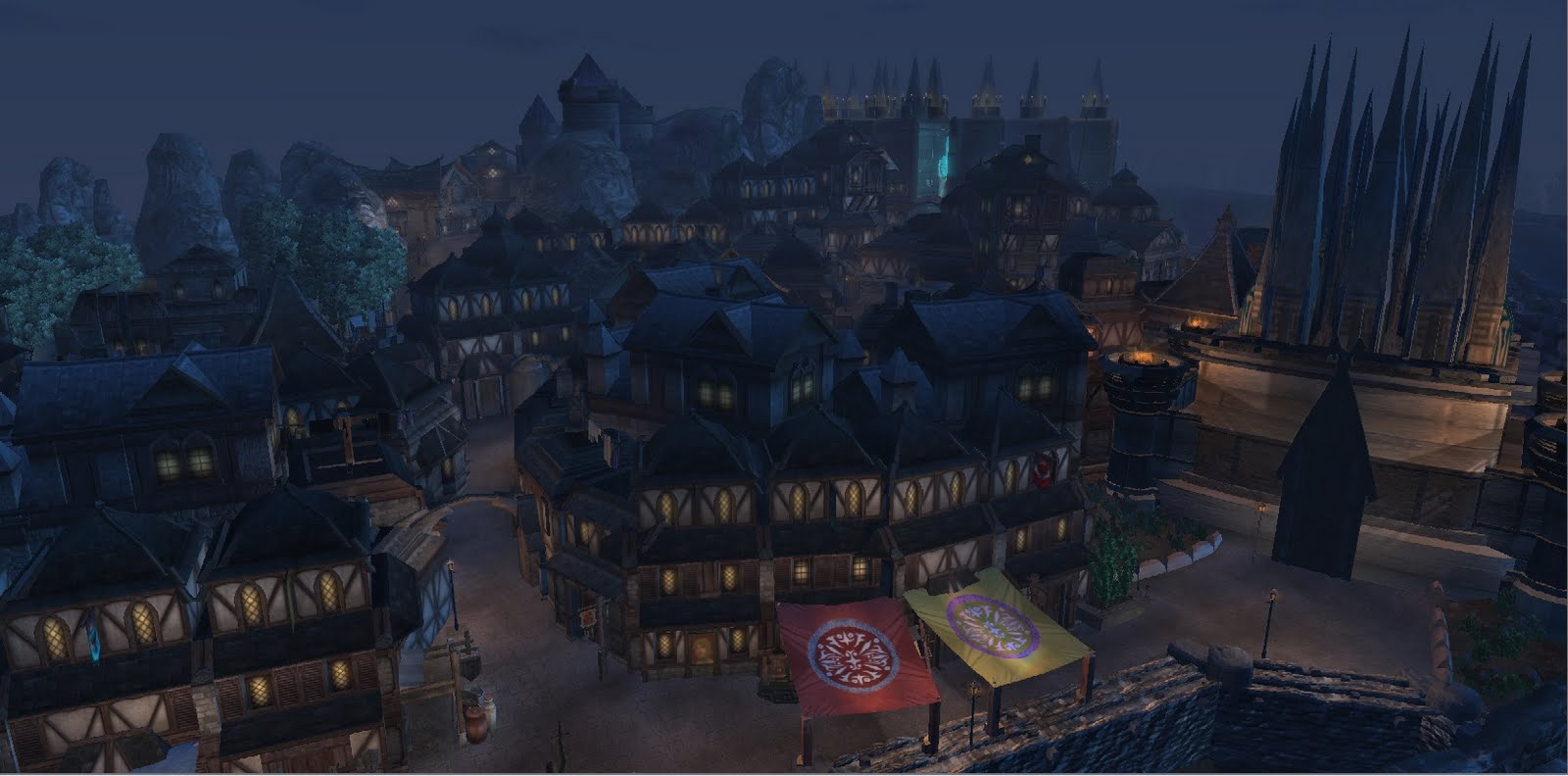 The only thing remaining in this external area is placing sounds and connecting any new areas. The monastery of Naw Bahar can be seen to the right in the first shot, with the Cowled Wizard Enclave in the background. In the second we look from the Enclave back towards the monastery, Getting this detail level in a city takes lots of time.